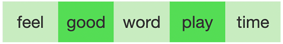 - A 4th word in a row with a green group won't be colored to indicate right or wrong.